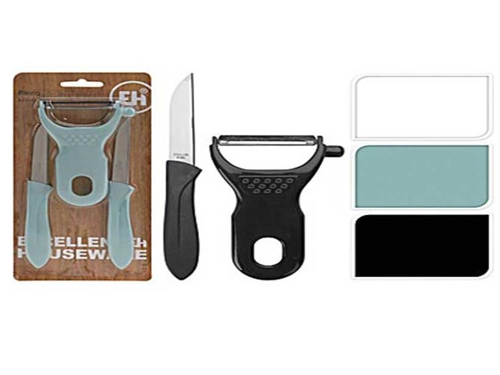 Komplet za kuhinjo iz nerjavečega jekla (ročaj iz PP). Tovarniško sortirane barve.