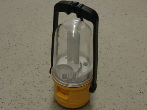 Klasična svetilka z ročajem za obešanje ali nošenje. Ima dvestopnje delovanja; polna svetilnost (florestenčni vložek) in rahla svetilnost (žarnica). Višine 22 cm (brez ročaja), premera 9 cm ter teže 460g. Delovanje na 4x D baterije (niso priložene).