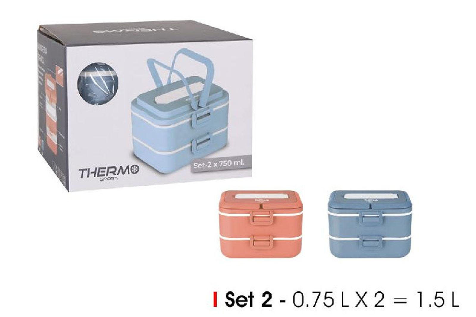 Odlična termo posoda (dva kosa) za malice ali transport živil. Dvakrat po 0,75 litra volumna. Priročen ročaj za nošenje.