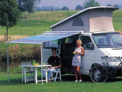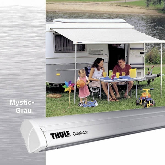 Tenda s hitro montažo. Med vožnjo je dobro zaprta, da se lahko varno peljete. Raztegne se jo ročno, nazaj pa se pospravi avtomatsko s pomočjo vzmeti na nosilcu. Mogoča je različna postavitev podpornih palic. Tenda ima izvlek 130 cm pri 190 cm, 200 cm pri 260 cm in 215 cm pri 300 cm dolžine. Ohišje je bele barve, platno pa Mystic Grey (siva).