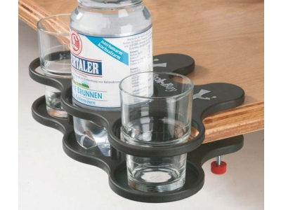 Univerzalen nosilec za kozarce ali steklenice bo poskrbel za prazno površino mize. Tako bo več prostora za družabne igre! Primerno za 1,5 literske steklenice in debelino miz maks. do 35 mm. Trdna in močna plastična zasnova!