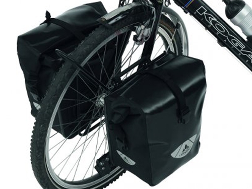 Težko boste našli bolj prilagodljivo torbo za kolo kot Vaude Aqua. Torba je narejena v Nemčiji in je univerzalna tako za zadnjo kot sprednjo namestitev na kolo. Zapira se na princip vodonepropustnih vreč, se prav z rolanjem. Zaprta torba ostane 100% zatesnjena in vodoodporna. Volumen; 28 litrov na eno.