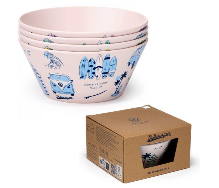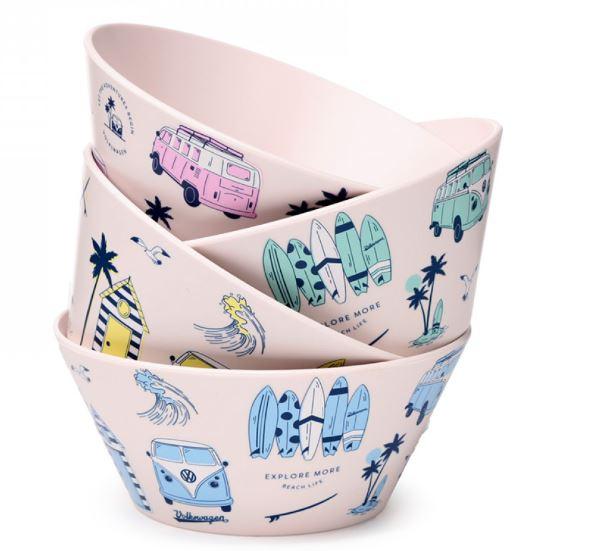 Set štirih piknik skled RPET Caravan VW Volkswagen T1 Camper Explora je eleganten in praktičen komplet, ki je popoln za vse ljubitelje piknikov in kampiranja. Te sklede so zasnovane v slogu legendarnega kombija Volkswagen T1, kar jim daje retro in edinstven videz.Sklede so izdelane iz RPET (recikliranega polietilen tereftalata), kar pomeni, da so okolju prijazne, saj so narejene iz reciklirane plastike. To pripomore k zmanjšanju vpliva na okolje in podpira trajnostni način življenja.