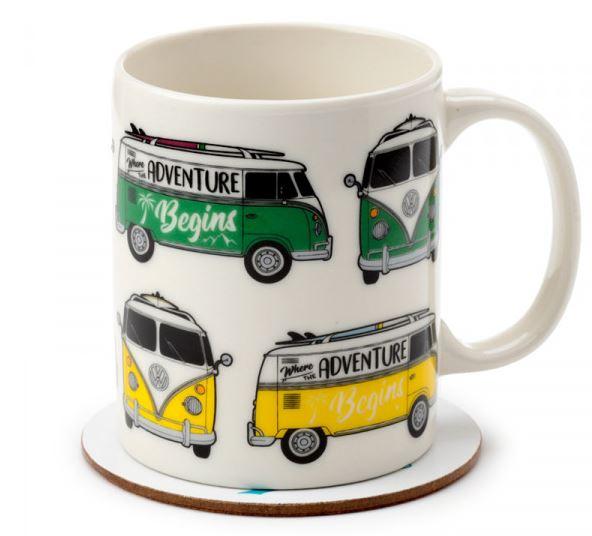 Ta komplet vključuje porcelansko skodelico in podstavek z motivom ikoničnega VW Volkswagen T1 Camper. Skodelica je izdelana iz kakovostnega porcelana, medtem ko je podstavek narejen iz trpežnega korka, kar zagotavlja zaščito površin pred vročimi pijačami. Ta izdelek je primeren za tiste, ki cenijo retro oblikovanje in iščejo funkcionalne ter estetsko privlačne dodatke za svojo kuhinjo.