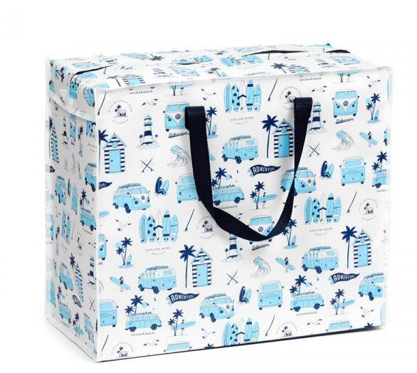 Shranjevalna vreča za avtodom Volkswagen VW T1 Camper Explore je zasnovana za učinkovito organizacijo in shranjevanje predmetov med kampiranjem ali potovanjem. Izdelana je iz trpežnega polipropilena z gostoto 140 g/m², kar zagotavlja odpornost na obrabo in dolgo življenjsko dobo izdelka. Vreča spada v kategorijo kuhinjskih pripomočkov in dodatkov ter služi kot priročna rešitev za shranjevanje in hlajenje hrane ter drugih potrebščin v avtodomu.