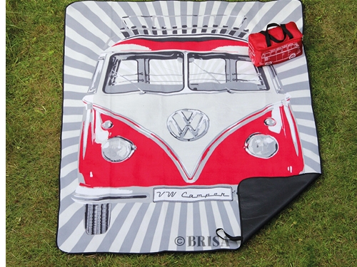 Odlična piknik odeja v znamenitem VW T1 vzorcu! Priložena tudi inovativna torba za nošenje!