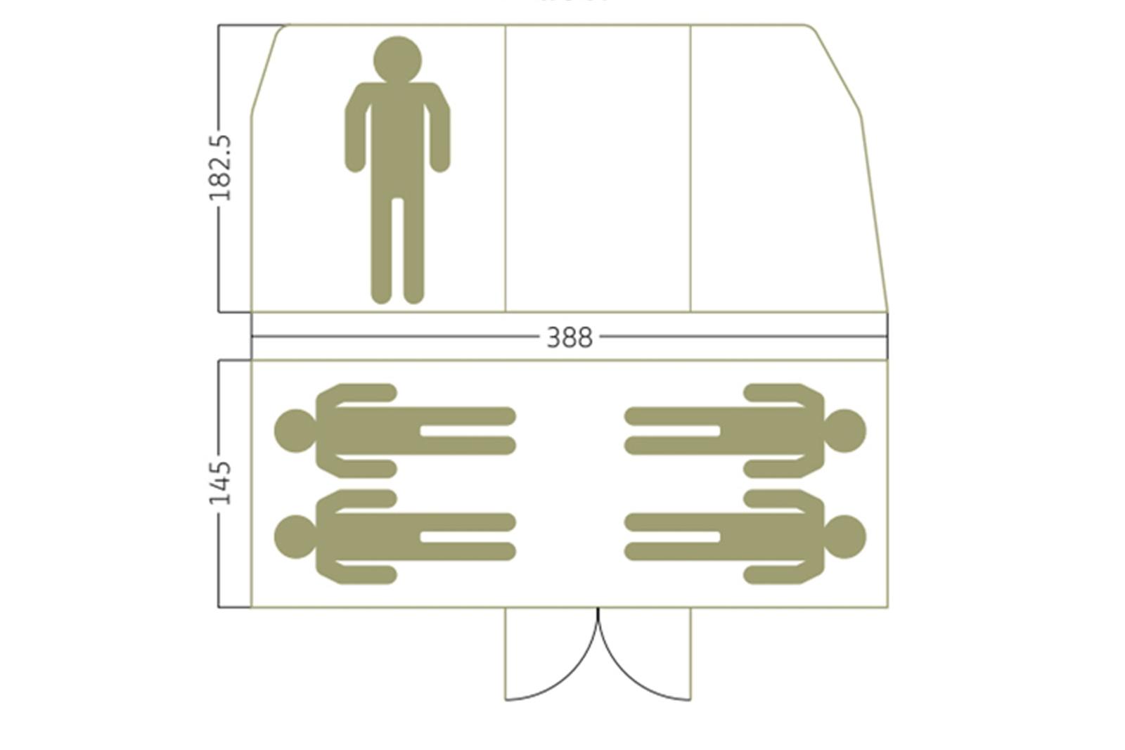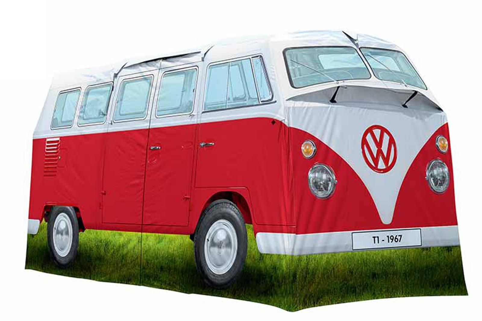 Originalni VW T1 iz leta 1967 šotor (merilo 1:1) , ki bo pritegnil marsikateri pogled. Je prostoren (za štiri ljudi) in vključuje dvoje spalnic. Streha ima 3000 mm VS, stranice pa 1000 mm. Notranjost ima dodatne praktične žepe na notranji strani. Za kamperiste s stilom!