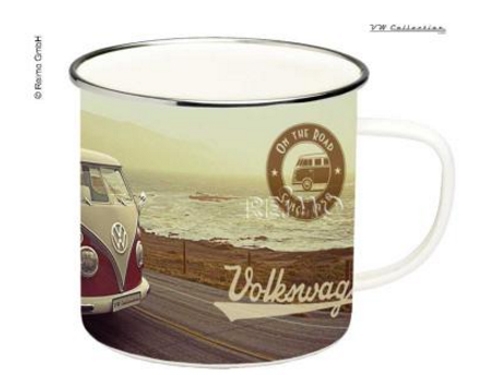 Klasična skodelica iz emajliranega jekla z nerjavečim robom. Višine 8,5 cm in volumna 500 ml. Retro dizajn po originalni VW licenci!