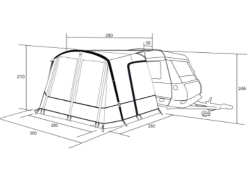 Izjemno stabilen hitro postavljiv šotor s sistemom ene zračne cevi. Preverjena troslojna Westfieldova Air Erect System® (AES) tehnologija cevi. Oblika klasičnega predšotora v obliki tunela. Odličen HydraDore® z UV zaščito, je zelo lahek in se hitro suši. Izjemno hitra postavitev. Predšotor ima dvoje stranskih vrat z komarniki, dvoje vhodnih vrat in dve veliki odprtini. Primerno za višino 235-250 cm. Idealno za lastnike avtodomov in prikolic, ki se veliko selijo po kampih