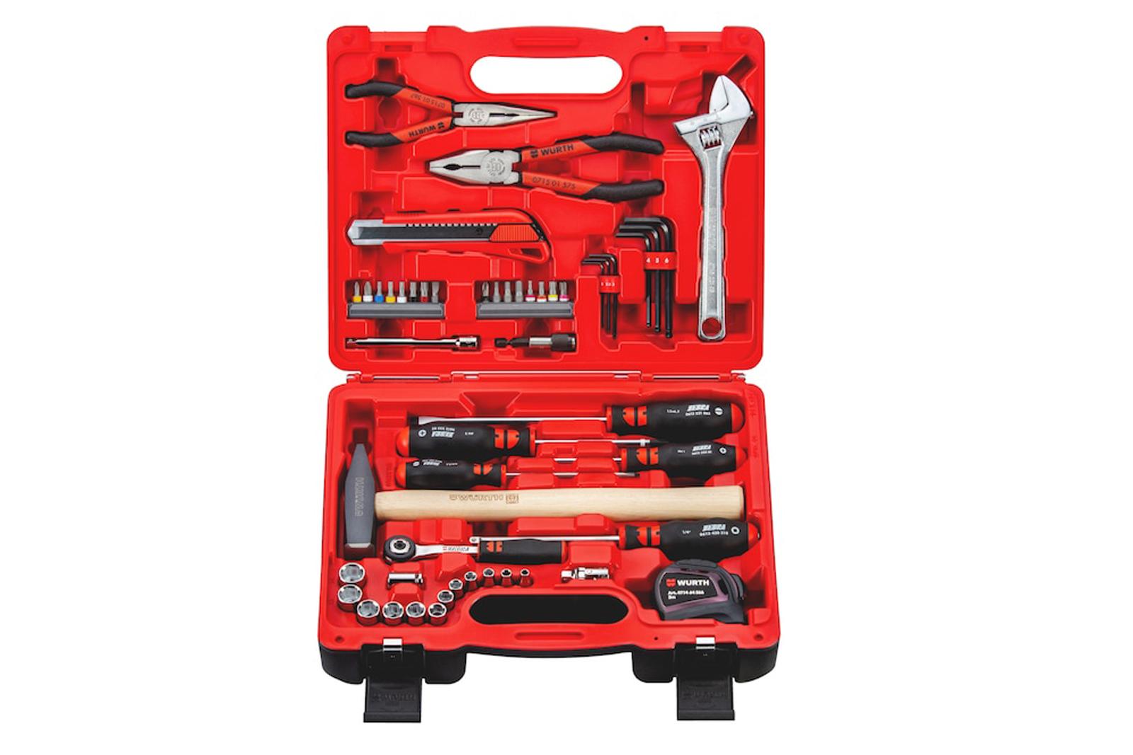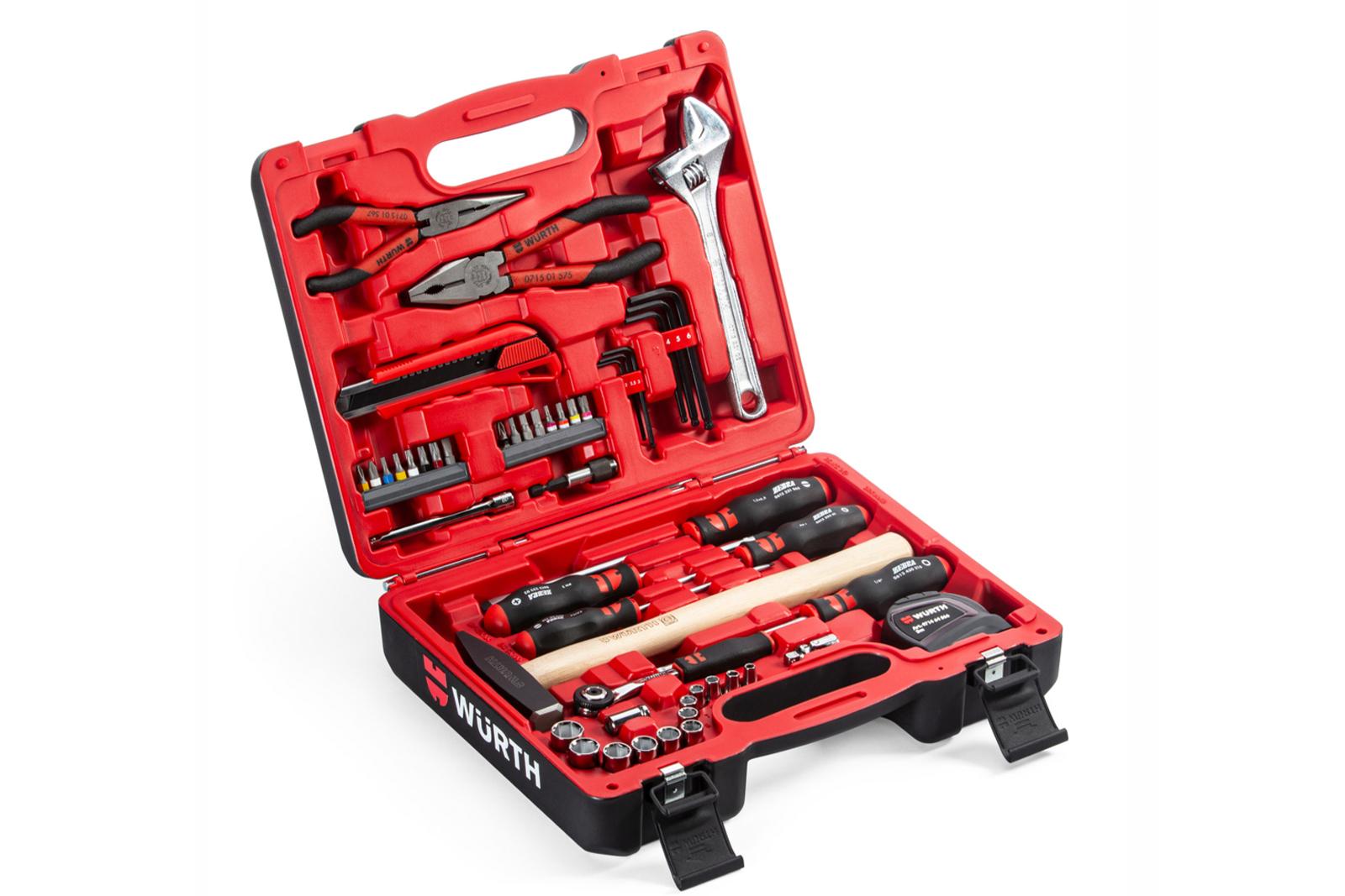 50 delni delovni kovček s podpisom Reinholda Würtha kot nalašč za prvo pomoč pri popravilu avtodoma ali prikolice na poti. Kompakten kovček s širokim naborom opreme v 2 barvnem dizajnu. Primeren za mobilno uporabo ali preprosta popravila po delavnici. Robustna aluminijeva loputa zagotavlja zanesljiv transport orodja